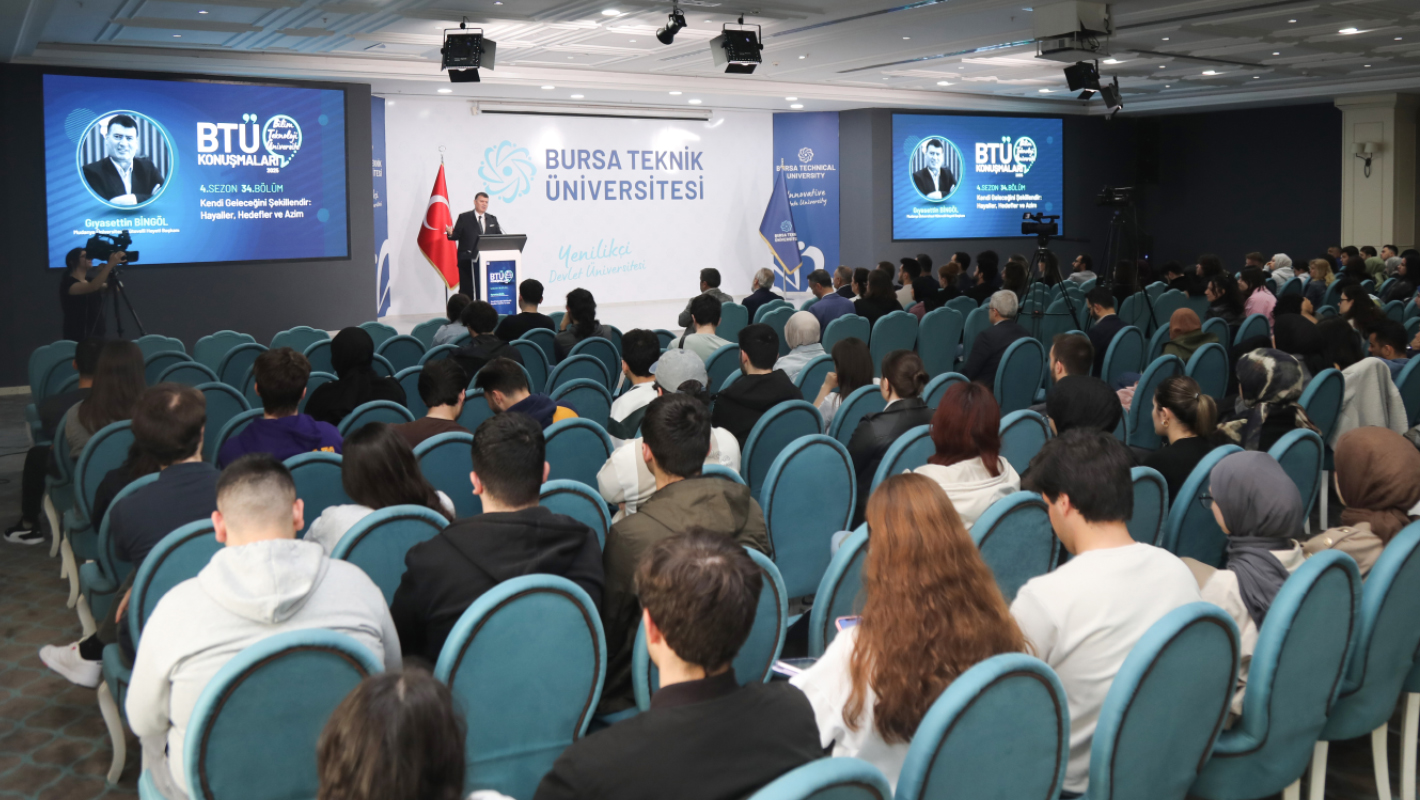 BTÜ Konuşmaları’nın 4’ncü sezon 34’ncü bölüm konuğu Mudanya Üniversitesi Mütevelli Heyeti Başkanı Gıyasettin Bingöl oldu. Mimar Sinan Yerleşkesi Turkuaz Salon’da gerçekleşen programa; BTÜ Rektörü Prof. Dr. Naci Çağlar, Rektör Yardımcıları Prof. Dr. Beyhan Bayhan, Prof. Dr. Sinan Uyanık ve Prof. Dr. Barış Tamer Tonguç, akademik ve idari personel ile öğrenciler katıldı. “Kendi Geleceğini Şekillendir: Hayaller, Hedefler ve Azim” başlıklı konuşmasını yapan Gıyasettin Bingöl, ekonomik ve sosyal olanaksızlar içerisinde eğitim hayatını tamamladıktan sonra adım adım kariyerini nasıl gerçekleştirdiğini anlattı. Çok çalışarak ve bedeller ödeyerek, 1980 yılında Bursa’nın ilk kültür eğitim kitapevi BKM’yi açtıklarını ifade eden Gıyasettin Bingöl, “Onca zorluğun üstesinden gelerek açtığımız bu kitapevinden sonra bir adım daha atarak, Bursa Kitapçılar Çarşısı’nı kurduk. 13 farklı kitapçının yer aldığı bu merkez, üniversitelilerin en çok tercih ettiği nokta oldu. Üzerine kitap toptancılığını eklediğimiz bu kariyer yolculuğumuz; dershaneler, kolejler ve bugün son olarak Mudanya Üniversitesinin kuruluşu ile devam etti” diye konuştu.